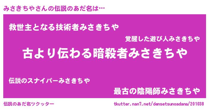 | 意味不明あだ名 | 『永久保存みさきちや』 |