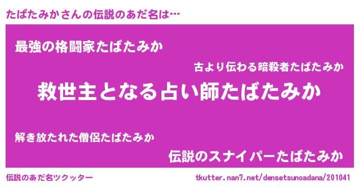 | ヒーロー風カッコイイあだ名 | 『天空の使者たばたみか』 |