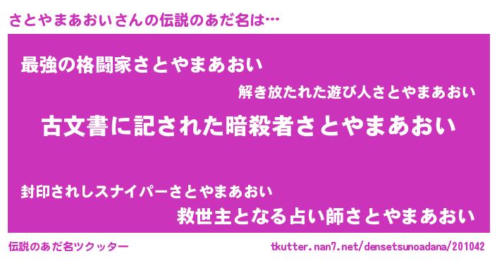 | ヘコむあだ名 | 『さとやまあおい(爆)』『酢こんぶ』 |