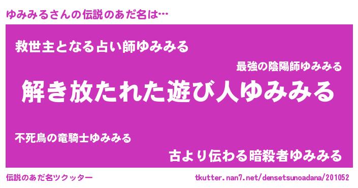 | 意味不明あだ名 | 『自称ゆみみる』『もやし科ゆみみる属』 |