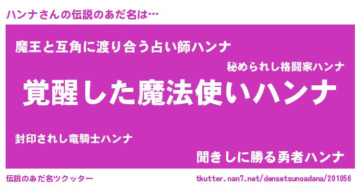 | ファンタジー風あだ名 | 『ゼハントゥ』『ヴァルハンーナ』 |