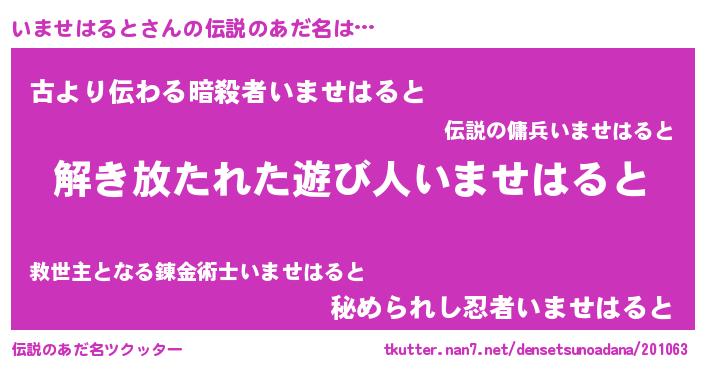 | 意味不明あだ名 | 『とにかく怪しいいませはると』 |