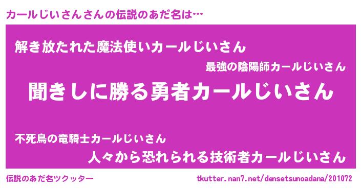 | 意味不明あだ名 | 『永久保存カールじいさん』 |