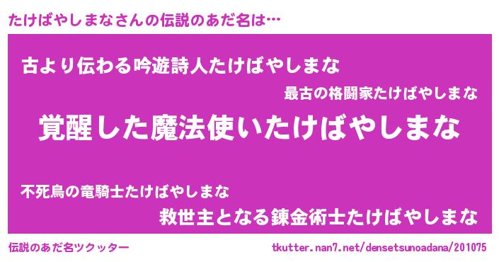 | ヘコむあだ名 | 『たけを』『たけばやしまな(小並感)』 |