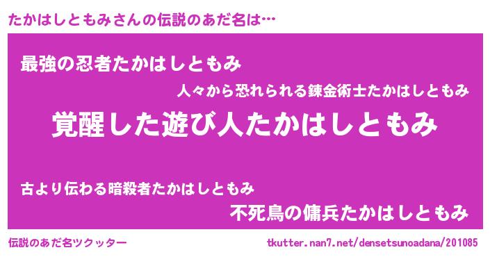| 意味不明あだ名 | 『とにかく怪しいたかはしともみ』 |