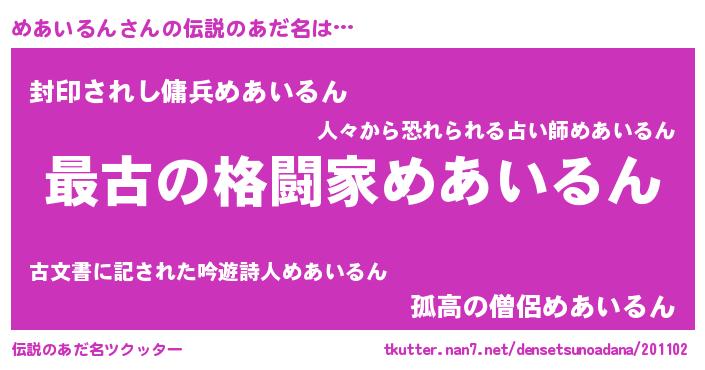 | 意味不明あだ名 | 『めあいるんフォーエバー』 |