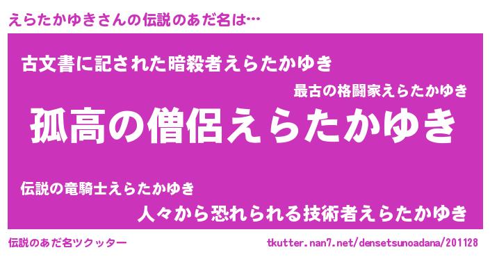 | ヘコむあだ名 | 『えらっ子』『えらたかゆき(笑)』 |
