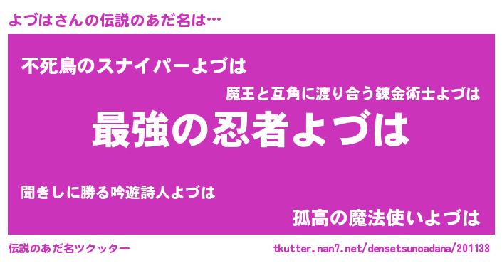 | ヒーロー風カッコイイあだ名 | 『究極戦士ヨヅハ』『ウルトラよづはマン』 |