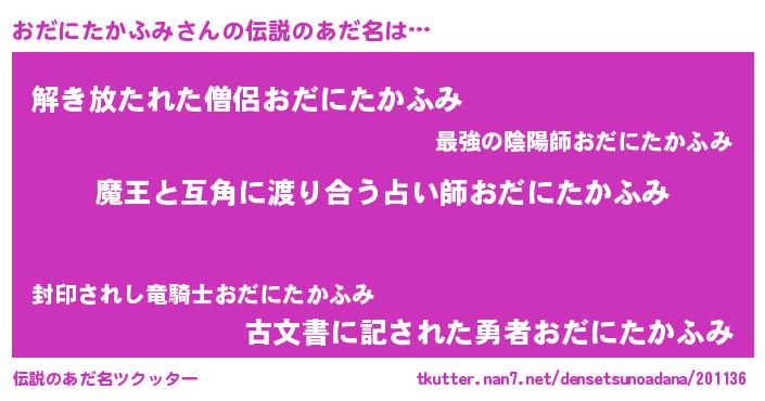 | ポケモン風あだ名 | 『オダキング』『オダゴンZ』 |