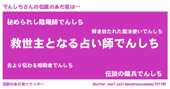 | 女子向けラノベタイトル風あだ名 | 『死神でんしちの再婚』『闇のでんしち』 |