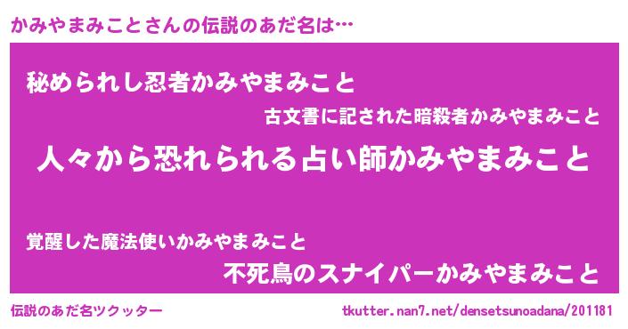 | 胡散臭い通販商品みたいなあだ名 | 『ガンによく効くアガリクス…その名も「かみやまみこと」』 |