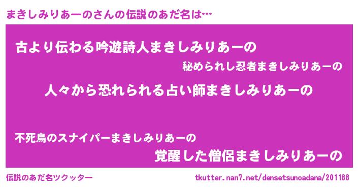 | 欧米人風あだ名 | 『トリンドルまきしみりあーの』 |