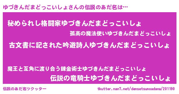 | 意味不明あだ名 | 『永久保存ゆづきんだまどっこいしょ』 |