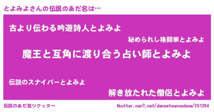 | ヒーロー風カッコイイあだ名 | 『愛の使者とよみよ』『ネオトヨミヨ』 |