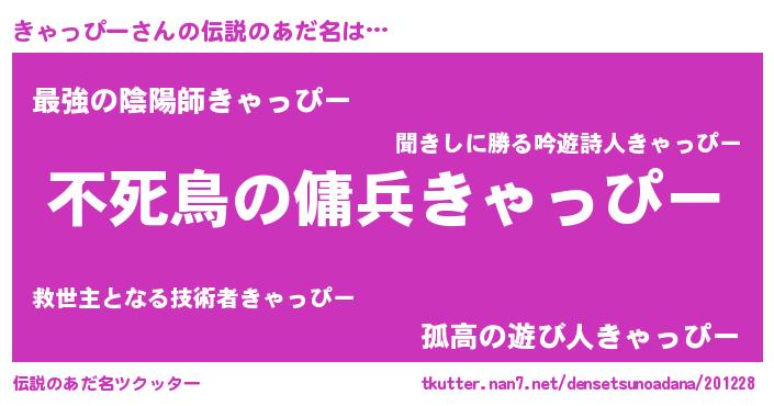 | 胡散臭い通販商品みたいなあだ名 | 『モテモテ間違いなし水晶球…その名も「きゃっぴー」』 |