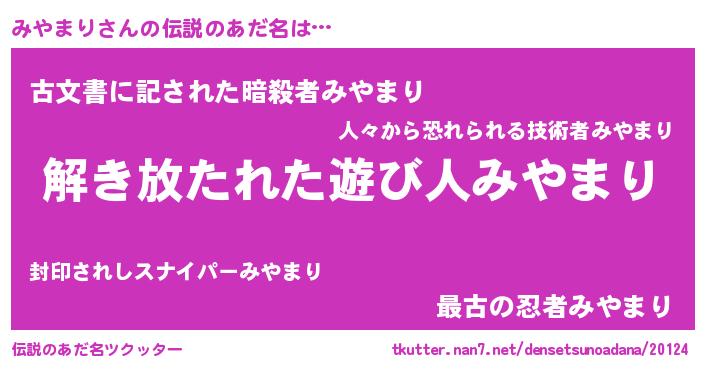 | ヒーロー風カッコイイあだ名 | 『銀牙騎士ミヤ』『ネオミヤマリ』 |