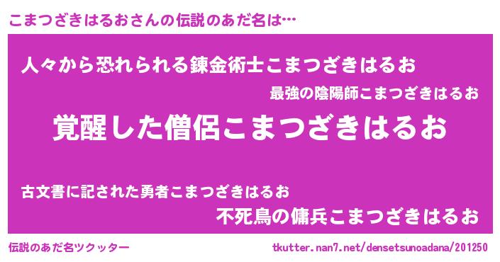 | 意味不明あだ名 | 『とにかく怪しいこまつざきはるお』 |