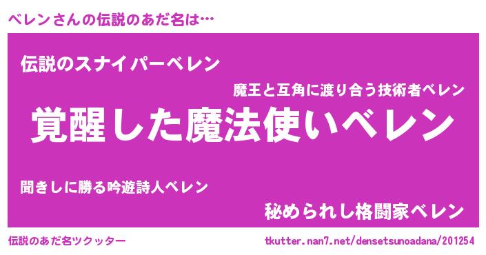 | 意味不明あだ名 | 『自称ベレン』『とにかく怪しいベレン』 |
