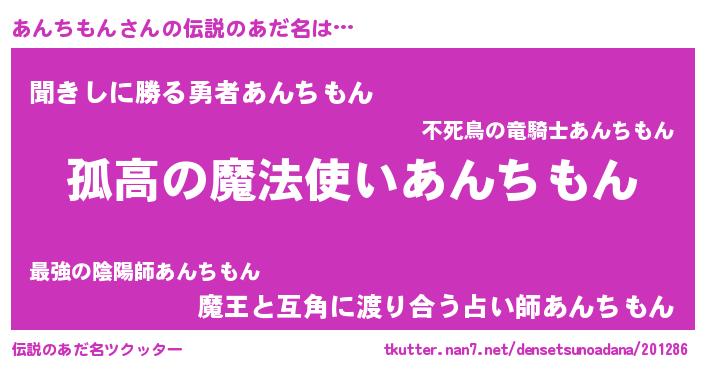 | 意味不明あだ名 | 『自称あんちもん』『永久保存あんちもん』 |