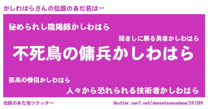 | 男性向けラノベタイトル風あだ名 | 『転生したらかしわはらだった件』 |