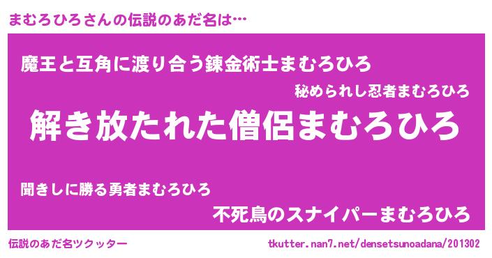 | 意味不明あだ名 | 『とにかく怪しいまむろひろ』 |
