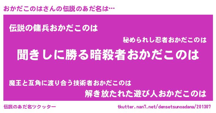 | ヘコむあだ名 | 『おかだこのは(爆)』『おかにゅー』 |