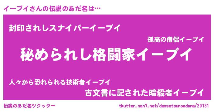 | ヒーロー風カッコイイあだ名 | 『ウルトライーブイマン』『ネオイーブイ』 |