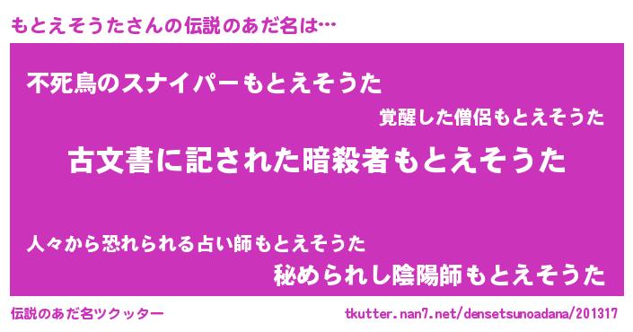 | 意味不明あだ名 | 『永久保存もとえそうた』 |