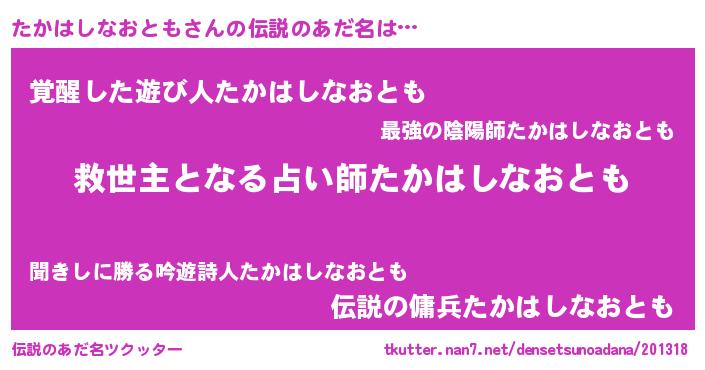 | ヒーロー風カッコイイあだ名 | 『慈愛の使者たかはしなおとも』 |