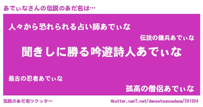 | ヒーロー風カッコイイあだ名 | 『ネオアディナ』『天空の使者あでぃな』 |