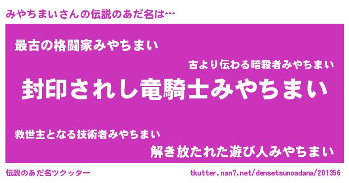 | ファンタジー風あだ名 | 『ミヤフェル』『エターナルミヤチマイー』 |
