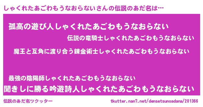 | 意味不明あだ名 | 『眠気覚ましガムしゃくれたあごわもうなおらない味』 |