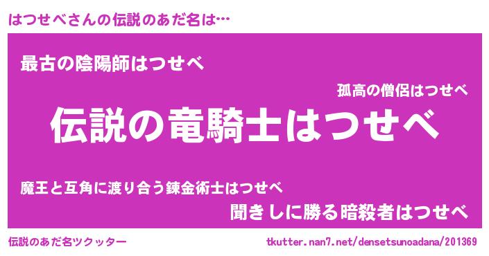 | 男性向けラノベタイトル風あだ名 | 『はつせべの憂鬱』『緋弾のハツセベ』 |