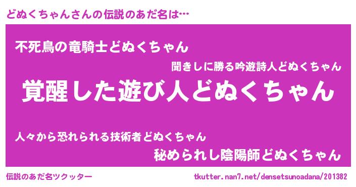 | ヒーロー風カッコイイあだ名 | 『幻影騎士ドヌ』『スーパードヌクチャン』 |