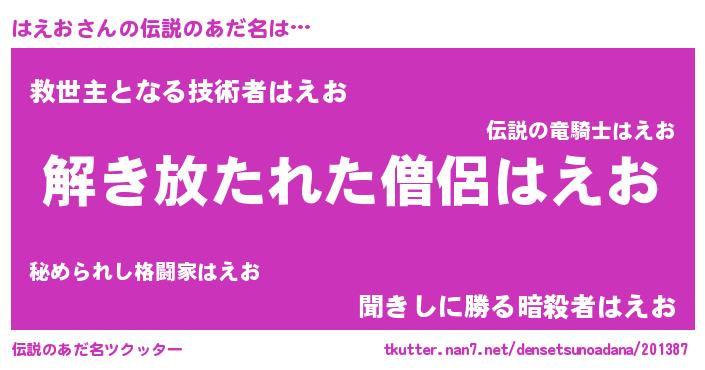 | 女子向けラノベタイトル風あだ名 | 『はえおアンティーク』 |