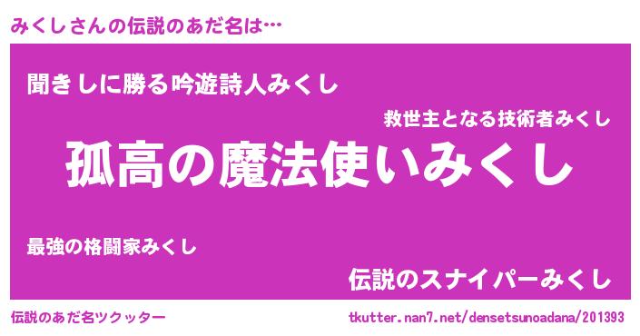 | 欧米人風あだ名 | 『ウサインみくし』『ダルビッシュみくし』 |