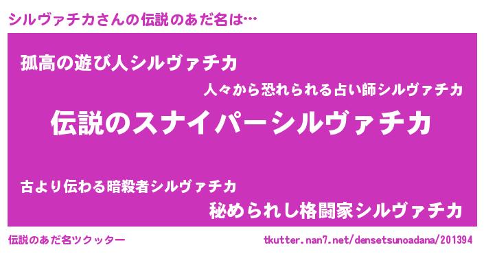 | 料理風あだ名 | 『シルヴァチカごはん』 |