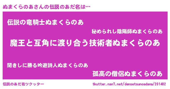 | ヒーロー風カッコイイあだ名 | 『友情の使者ぬまくらのあ』 |