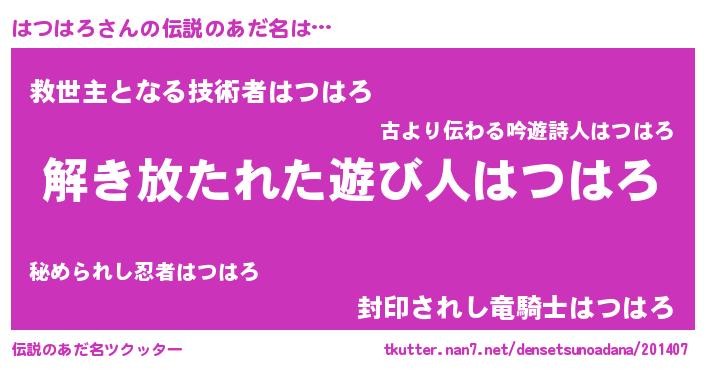 | ポケモン風あだ名 | 『ヒハツハロ』『ハツゴンZ』 |