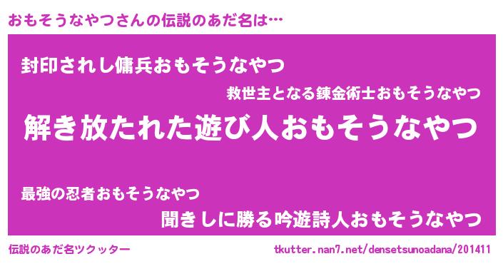 | ヒーロー風カッコイイあだ名 | 『仮面オモダー』『天弓騎士オモ』 |