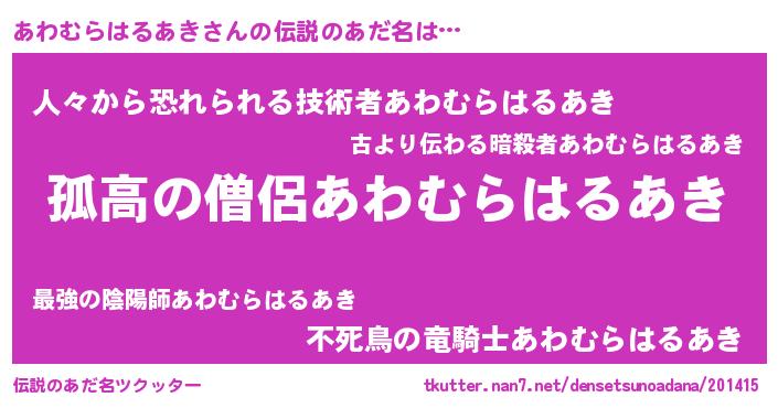 | 意味不明あだ名 | 『とにかく怪しいあわむらはるあき』 |