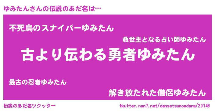 | 男性向けラノベタイトル風あだ名 | 『ゆみたんという概念が存在しない退屈な世界 』 |