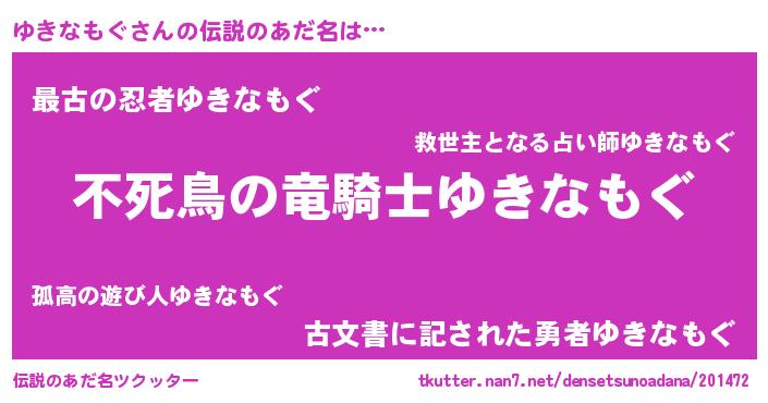 | 意味不明あだ名 | 『自称ゆきなもぐ』『ペロリンゆきなもぐ』 |