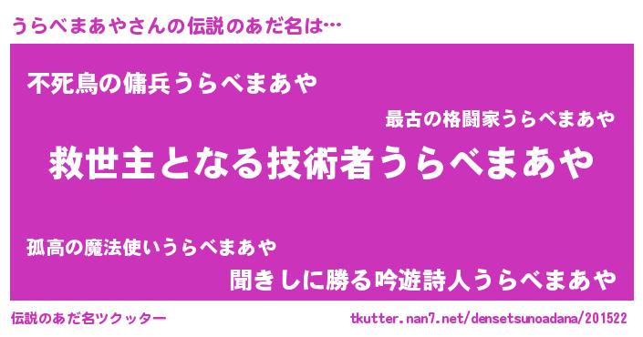 | 肩書あだ名 | 『うらべまあや助教授』 |
