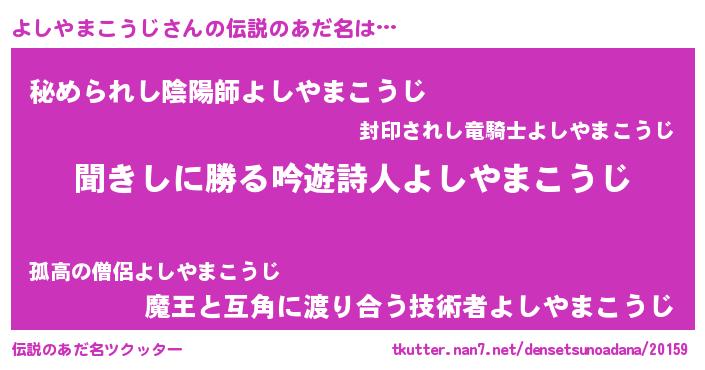ヘコむあだ名 | 『よしやまこうじ(笑)』『なまこ酢』 |