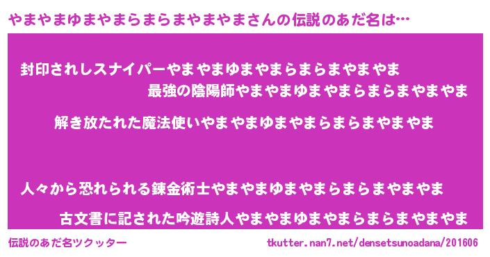 | ヒーロー風カッコイイあだ名 | 『サイバー戦士ヤマヤマユマヤマラマラマヤマヤマ』 |