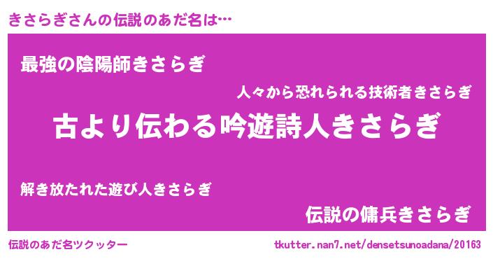 | ヒーロー風カッコイイあだ名 | 『ネオキサラギ』『ウルトラきさらぎマン』 |
