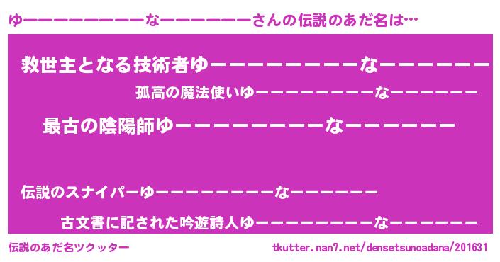 | 男性向けラノベタイトル風あだ名 | 『やはりゆーーーーーーーーなーーーーーーの青春ラブコメはまちがっている 』 |