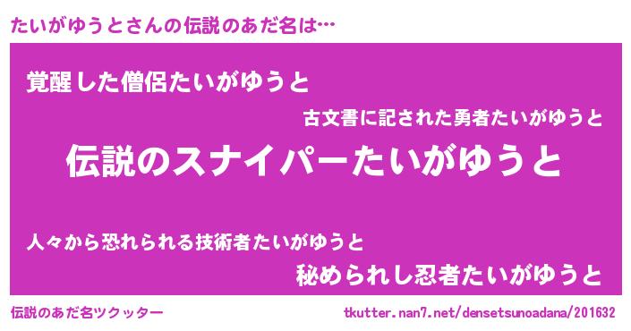 | 男性向けラノベタイトル風あだ名 | 『たいがゆうとの憂鬱』 |