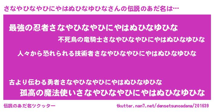 | 欧米人風あだ名 | 『ダニエルさなやひなやひにやはぬひなゆひな』 |